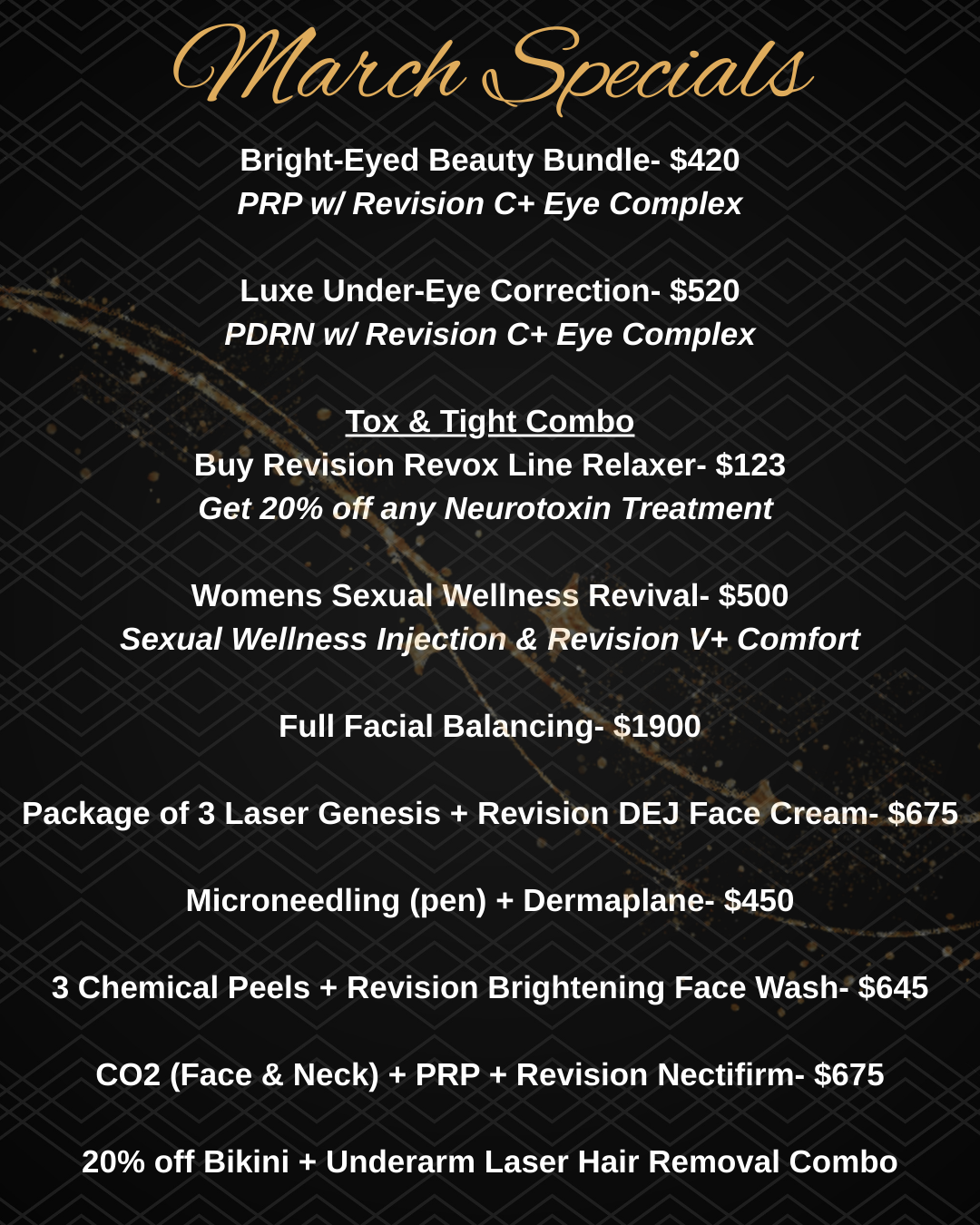These are our current specials. You can always call us to see if we have any other specials currently happening